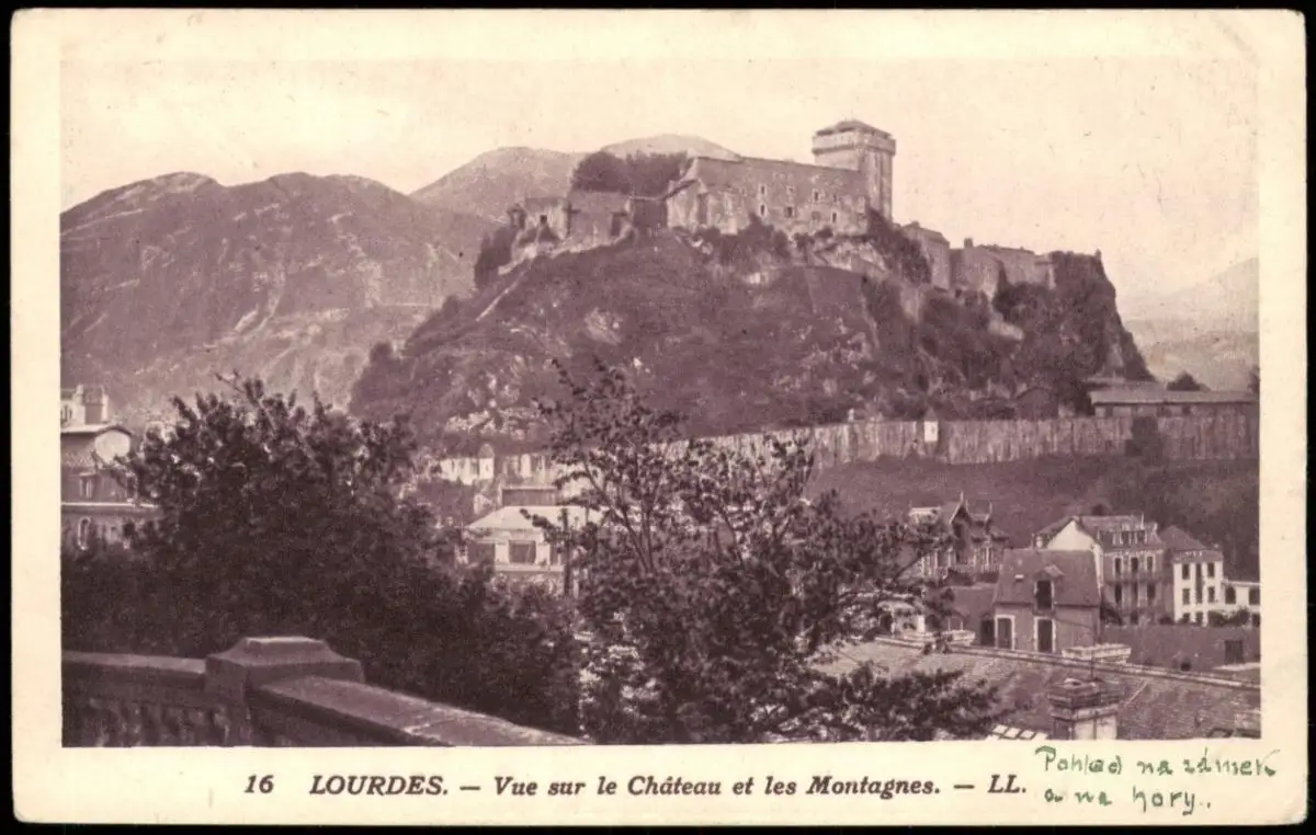 CPA Lourdes Lorda Vue sur le Château et les Montagnes 1930
