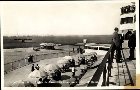 CPA Lyon Rhône, Port Aerien de Bron, Terrasse du Buffet-Hotel