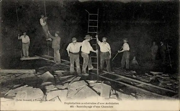 CPA Maine et Loire, Exploitation souterraine d'une Ardoisière, Remblayage d'une Chambre