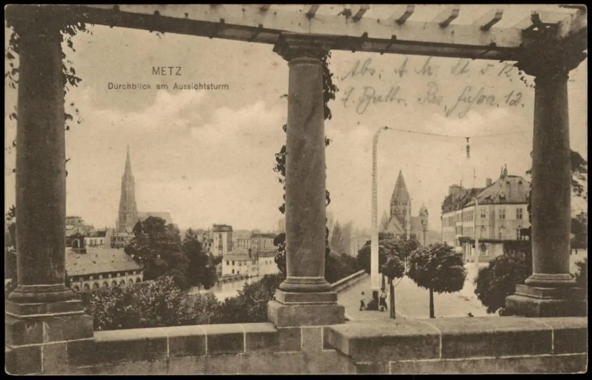 CPA Metz Durchblick am Aussichtsturm 1916 gel Feldpost-Geprüft Stempel