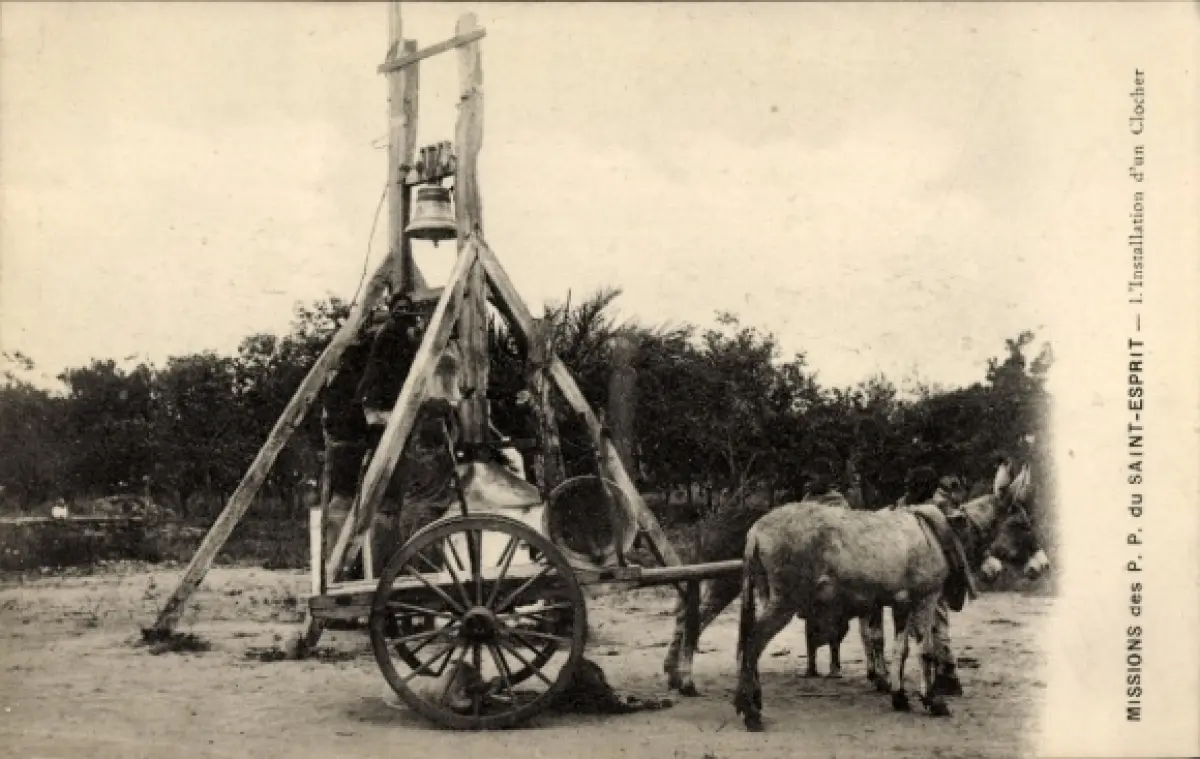 CPA Missions des PP du Saint Esprit, Installation d'un Clocher