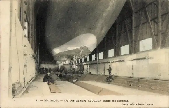 CPA Moisson, Dirigeable Lebaudy dans un hangar
