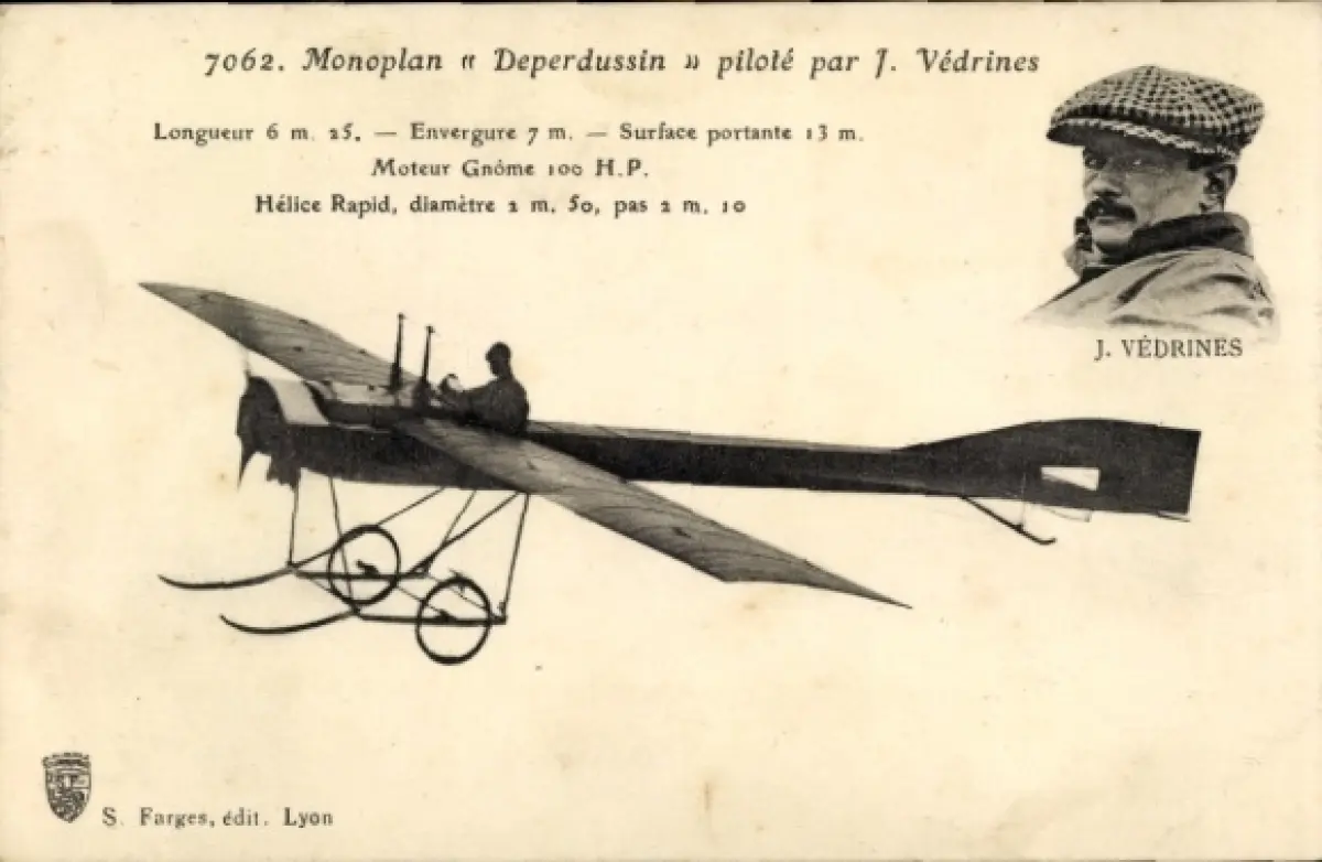 CPA Monoplan Deperdussin, piloté par J. Védrines