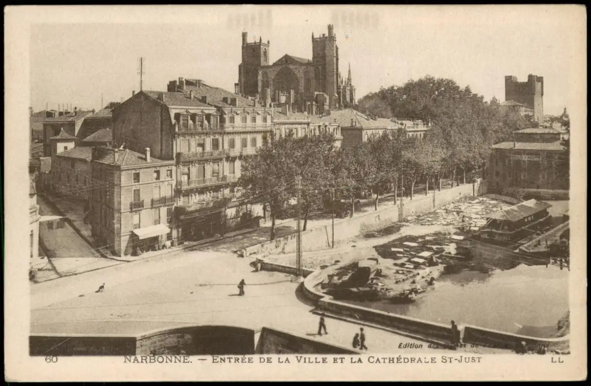 CPA Narbonne ENTRÉE DE LA VILLE ET LA CATHÉDRALE ST-JUST 1910