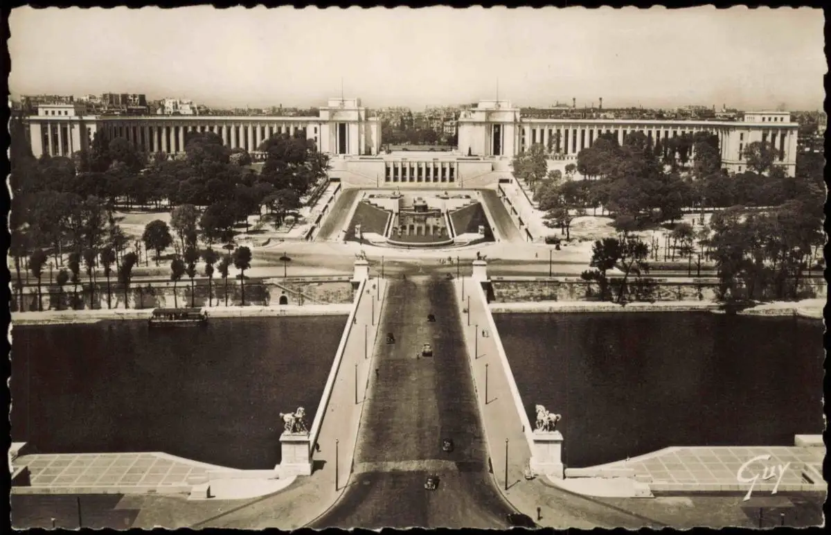 CPA Paris Pont d'Iéna et les Jardins du Falais de Chaillot 1950