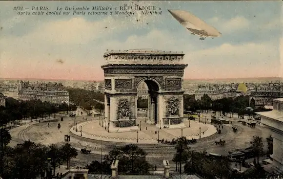 CPA Paris VIII., Dirigeable Militaire Republique, Arc de Triomphe