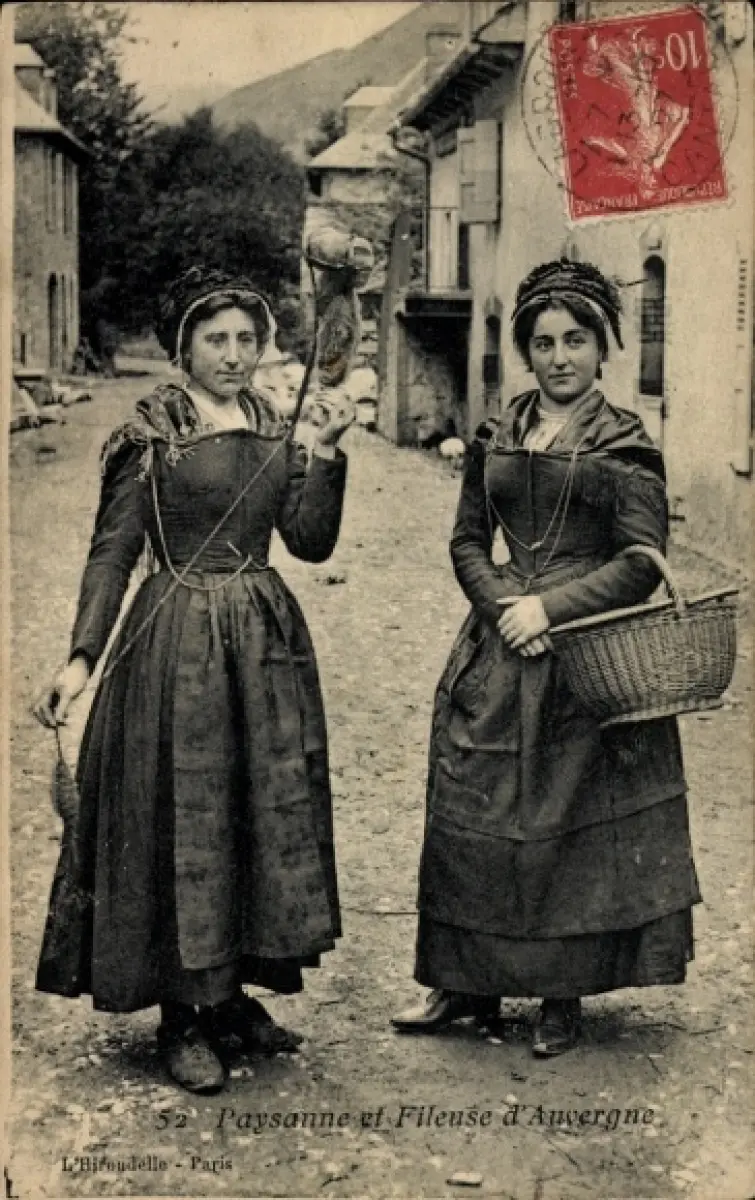 CPA Paysanne et Fileuse d'Auvergne, Frauen in Tracht