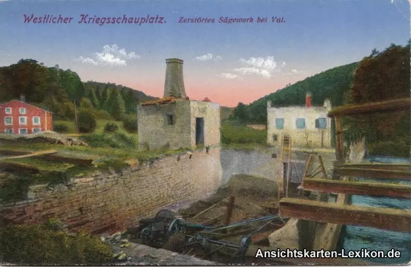 CPA Petitmont-Val-et-Châtillon Zerstörtes Sägewerk 1916