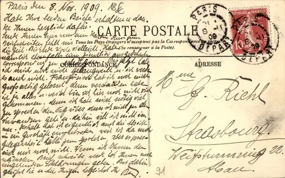 Zustand, siehe Scan, gelaufen, 1909 - ca 14 cm X 9 cm