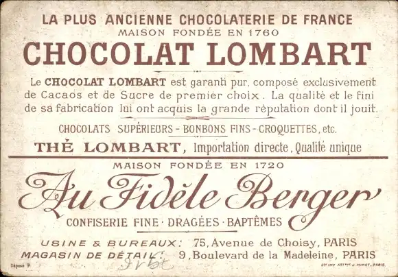 CPA Reklame, Ancienne Chocolaterie de France, Chocolat Lombart