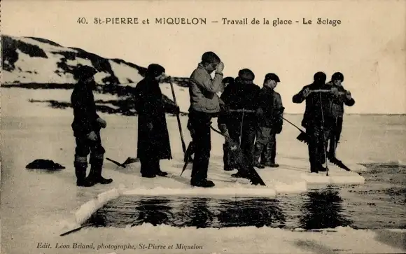 CPA Saint-Pierre-et-Miquelon, Travail de la glace, Le Sciage