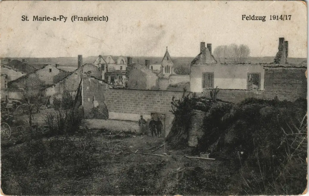 CPA Sainte-Marie-à-Py zerstörte Stadt gel Feldpost WK1 1917