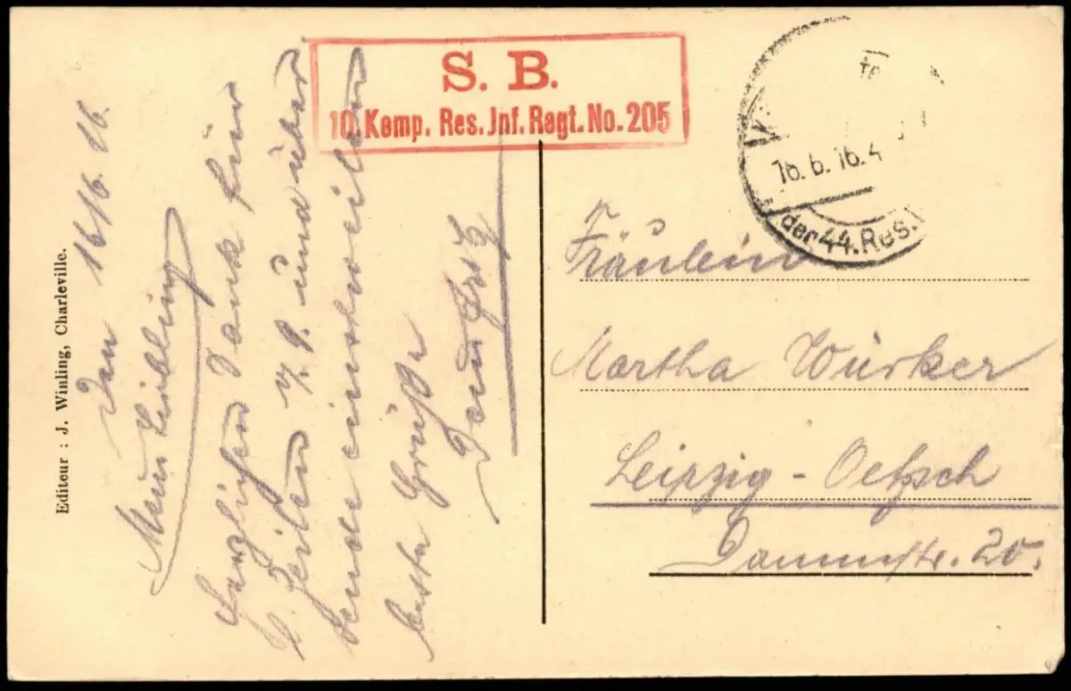 1. Weltkrieg Feldpostgelaufen (Roter Briefstempel)