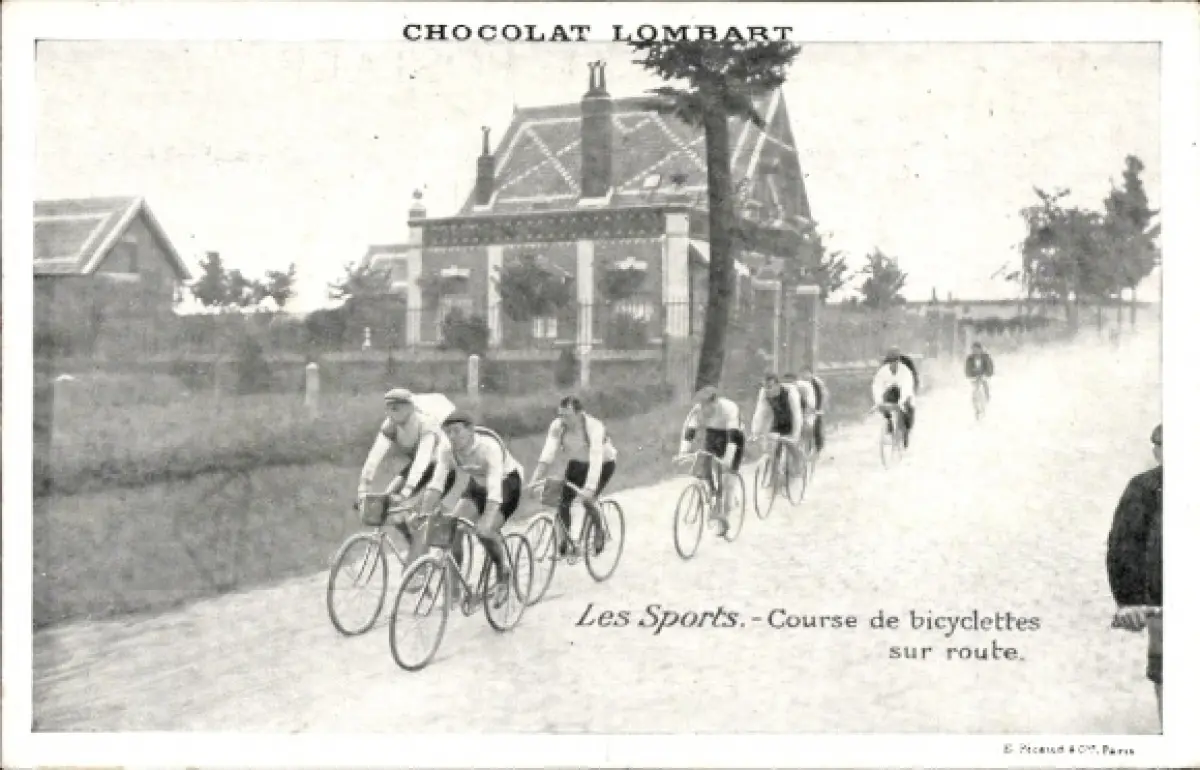 CPA Sport, Course de bicyclettes sur route, Reklame, Chocolat Lombart