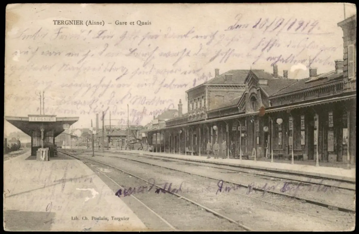 CPA Tergnier Bahnhof/ Gare - Gleisseite 1917 gel. Feldpost