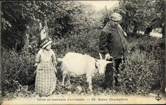CPA Types et Costumes d'Auvergne, Scene Champetre