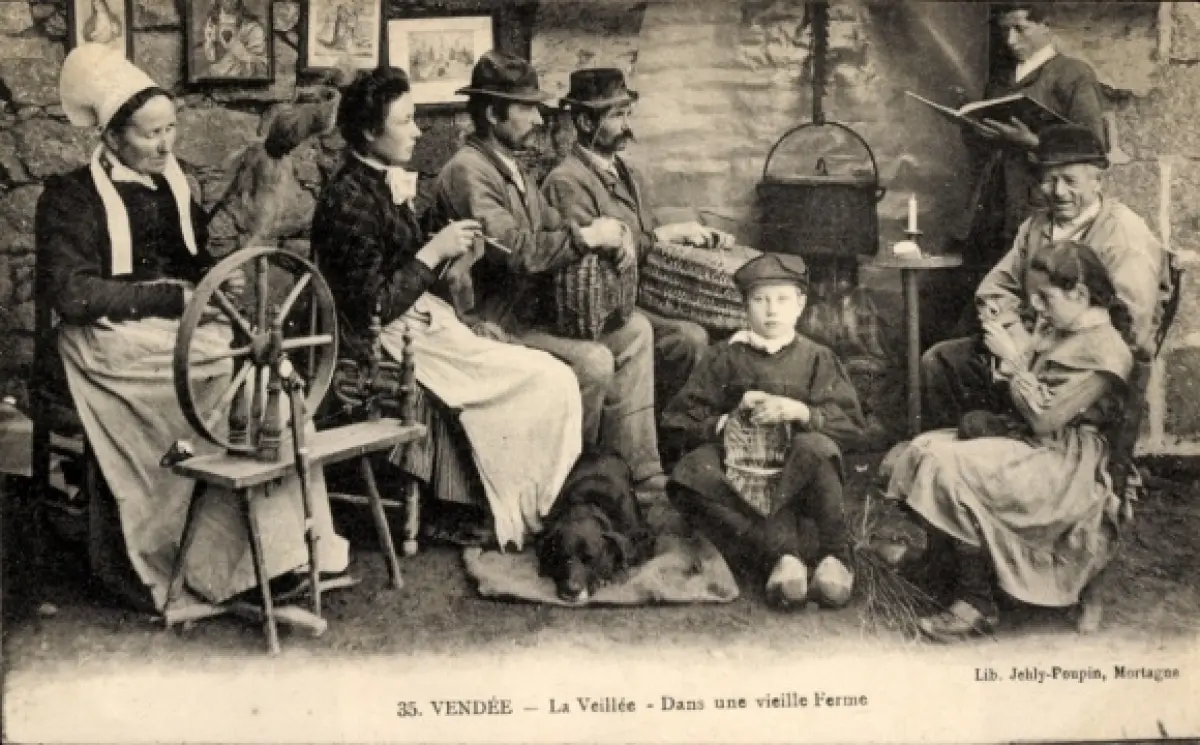 CPA Vendée, La Veillée, Dans une vieille Ferme