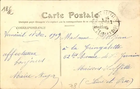 Zustand, siehe Scan, gelaufen, 1909 - ca 14 cm X 9 cm