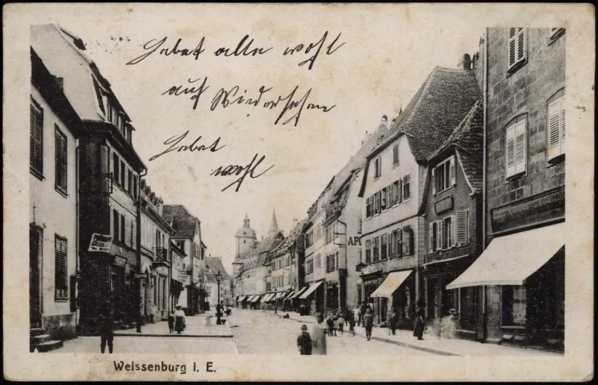 CPA Weißenburg Elsaß Wissembourg Straßenpartie, Geschäfte 1916 Feldpoststempel