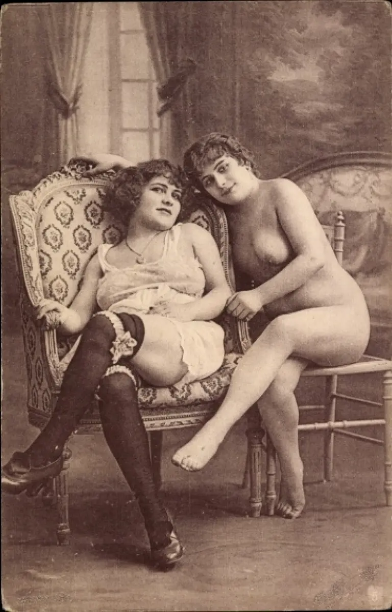 CPA Zwei Frauen sitzend, Erotik