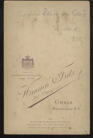Zustand: siehe Scan, ungelaufen- Fotograf Heinrich Fritz, Greiz
