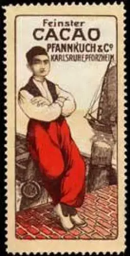 Feinster Cacao garantirt rein. Schiff, Größe/Zustand: 6x3 , guter Zustand, Original alte Reklamemarke die seinerzeit für die Werbung benutzt wurde