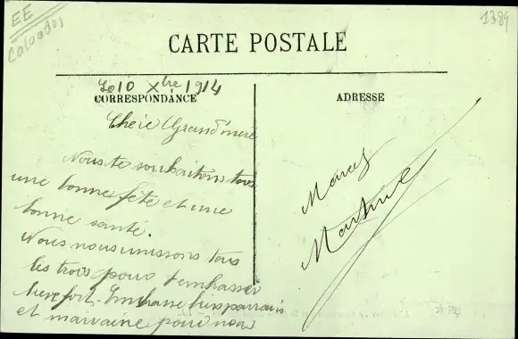 ungelaufen, Rückseite beschrieben, datiert 1914, sehr guter Zustand