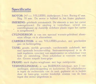 6 Seiten 19 x 16 cm Minor 247 ccm Villiers und Major 500 ccm OHV Holländischer Text Guter Zustand