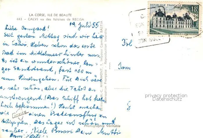 Calvi vu des falaises de Recisa Calvi postalisch gelaufen 1955 Erhaltung siehe scans [FriedD77] Frierer