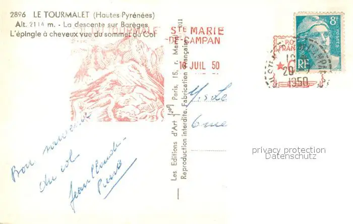 Campan Col du Tourmalet Gebirgspass Pyrenaeen Campan postalisch gelaufen 1950 Erhaltung siehe scans [FriedD77] Frierer