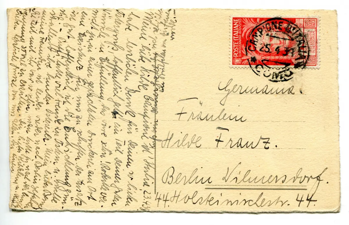 Campione d'Italia - Augusto Cent. 75 auf Briefumschlag Postkarte - Italienischer Meister - August Cent. 75 (Italien Nr. 422) auf Musterumschlag nach Berlin am 25.4.38 - Ungewöhnlicher Code Nr. 422 925/2