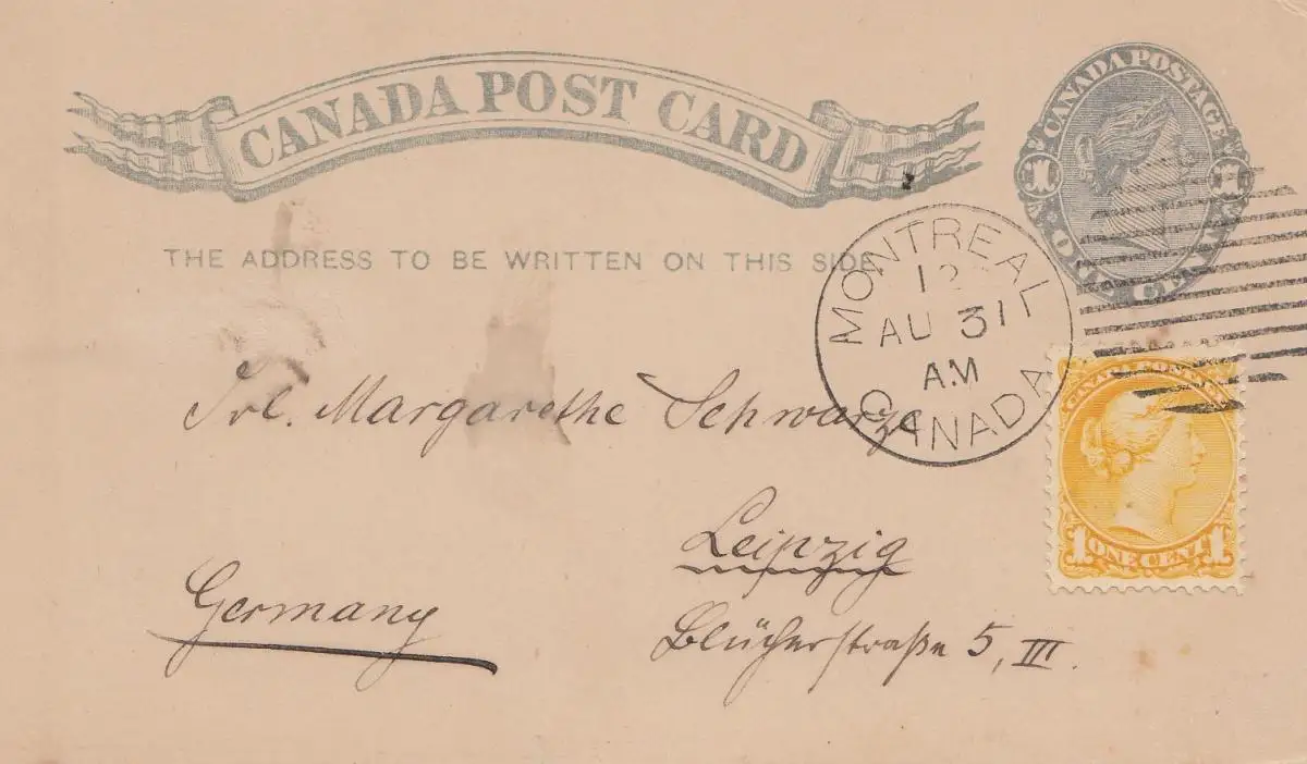 Canada: 1912: Montreal Post card to Leipzig