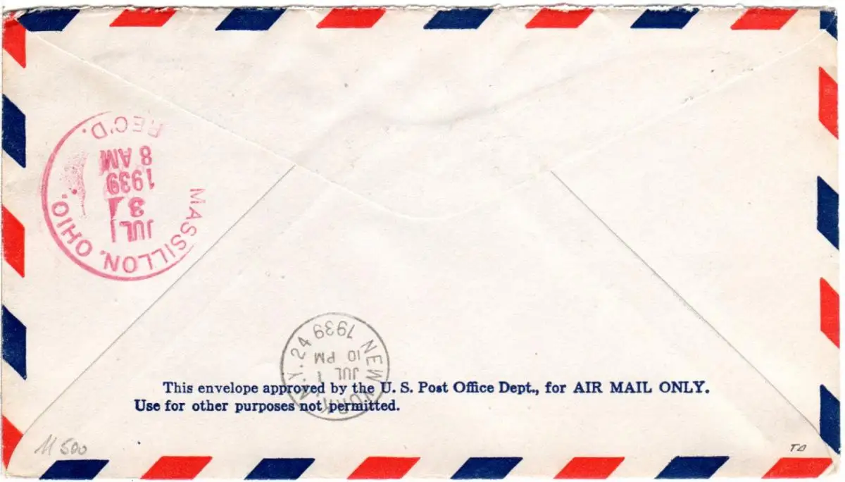 By First Contract Flight--Via Pan American Airways New Brunswick to USA. Receiver on reverse. 6/5 C. Ottawa Conference Air Mail stamp.