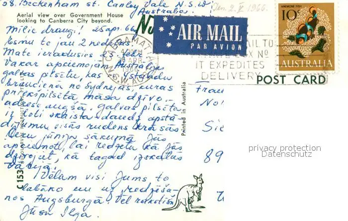 Canberra Fliegeraufnahme Government House Canberra postalisch gelaufen 1966 Erhaltung siehe scans [KathaD81] Kathoren