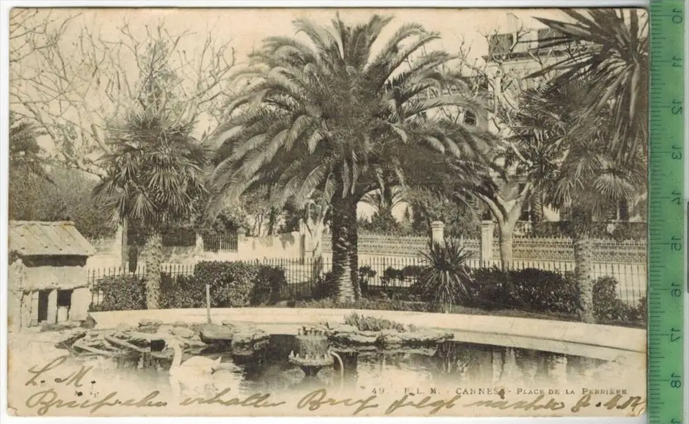 Cannes-Place de la Parriere - 1902 - Verlag: -----------, POSTKARTE mit Frankatur, mit Stempel, gelaufen, -5.1.02 Erhaltung: I-II, Karte wird in Klarsichthülle verschickt. (H)