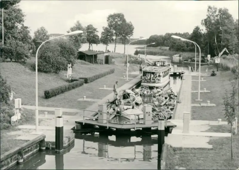 Canow-Wustrow (Mecklenburgische Seenplatte) Schiff an der Schleuse 1975