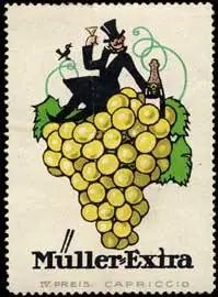 Weintraube, III. Preis, Müller Extra, Wein, Sekt, Größe/Zustand: 7x5 , guter Zustand, Original alte Reklamemarke die seinerzeit für die Werbung benutzt wurde