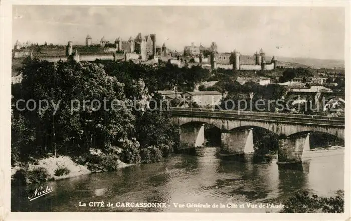 Carcassonne Vue générale de la Cité Pont sur l'Aude Carcassonne postalisch nicht gelaufen 1939 Erhaltung siehe scans [FriedD77] Frierer