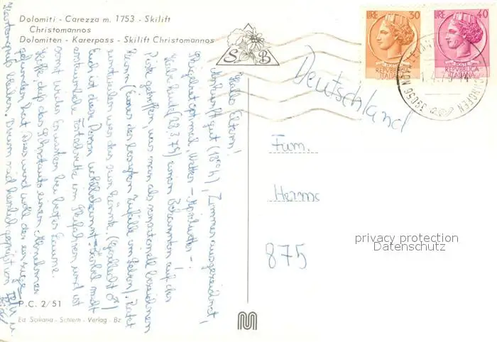 Carezza Skilift Christomannos Karerpass Dolomiten Carezza postalisch gelaufen 1975 Erhaltung siehe scans [FriedD77] Frierer
