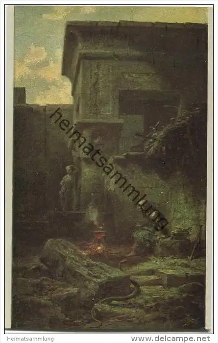Carl Spitzweg - Alte Frau mitten in Ruinen - Schlange - Verlag Peter Luhn Barmen - Rückseite beschrieben 1918 (G28858)