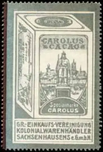 Spezialmarke Carolus Cacao, Größe/Zustand: 6x4 , guter Zustand, Original alte Reklamemarke die seinerzeit für die Werbung benutzt wurde