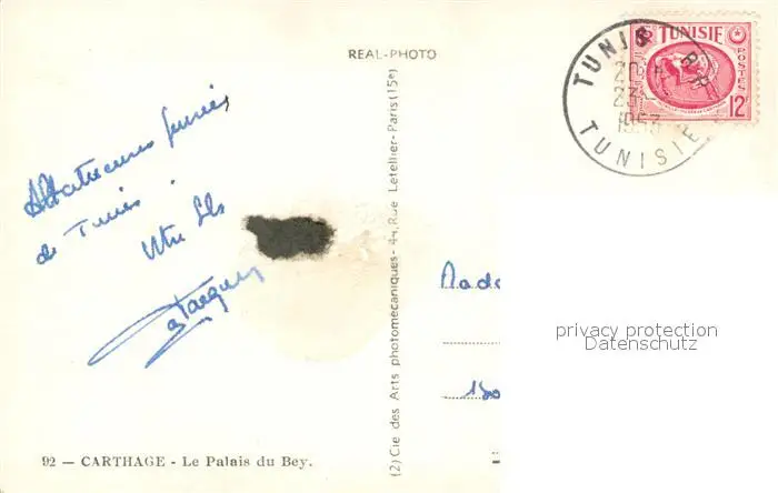 Carthage_Karthago Le Palais du Bey Carthage Karthago postalisch gelaufen 1957 Erhaltung siehe scans [WerneD78] WernPID7