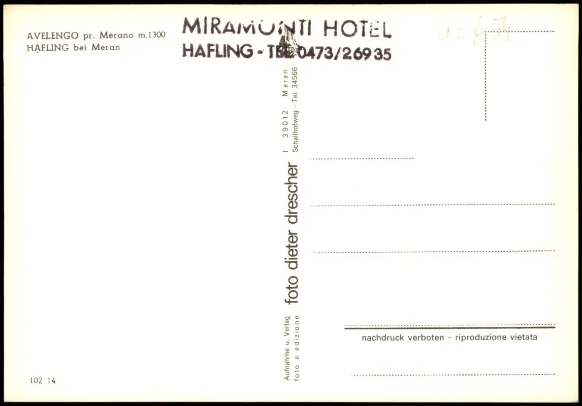 Cartoline Hafling Panorama-Ansicht AVELENGO pr. Merano m.1300 1970