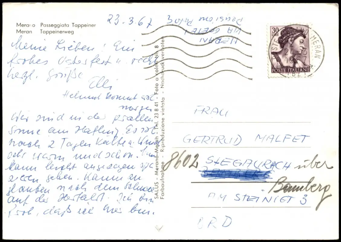 Cartoline Meran Merano Merano Passeggiata Tappeiner Panorama Blick 1967