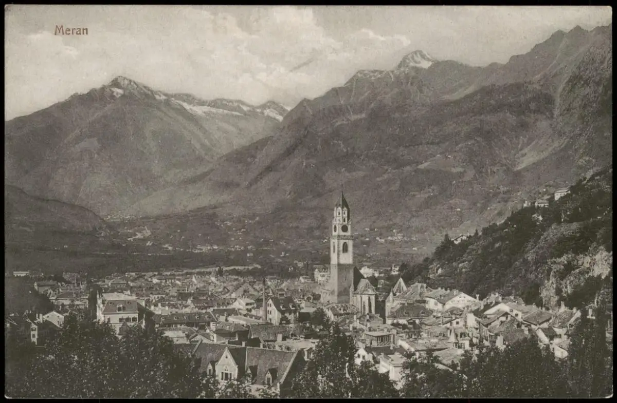 Cartoline Meran Merano Panorama-Ansicht 1910