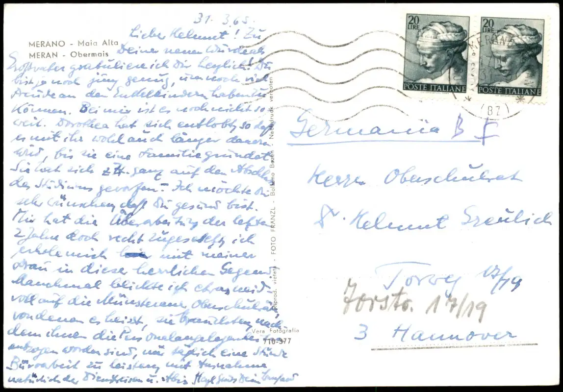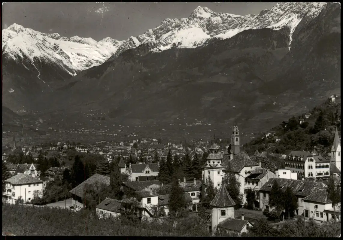 Cartoline Meran Merano Panorama-Ansicht Obermais Maia Alta 1965