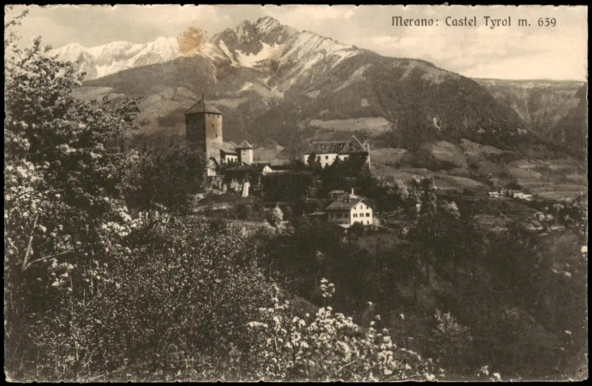 Cartoline Meran Merano Panorama mit Castel Tyrol 1920