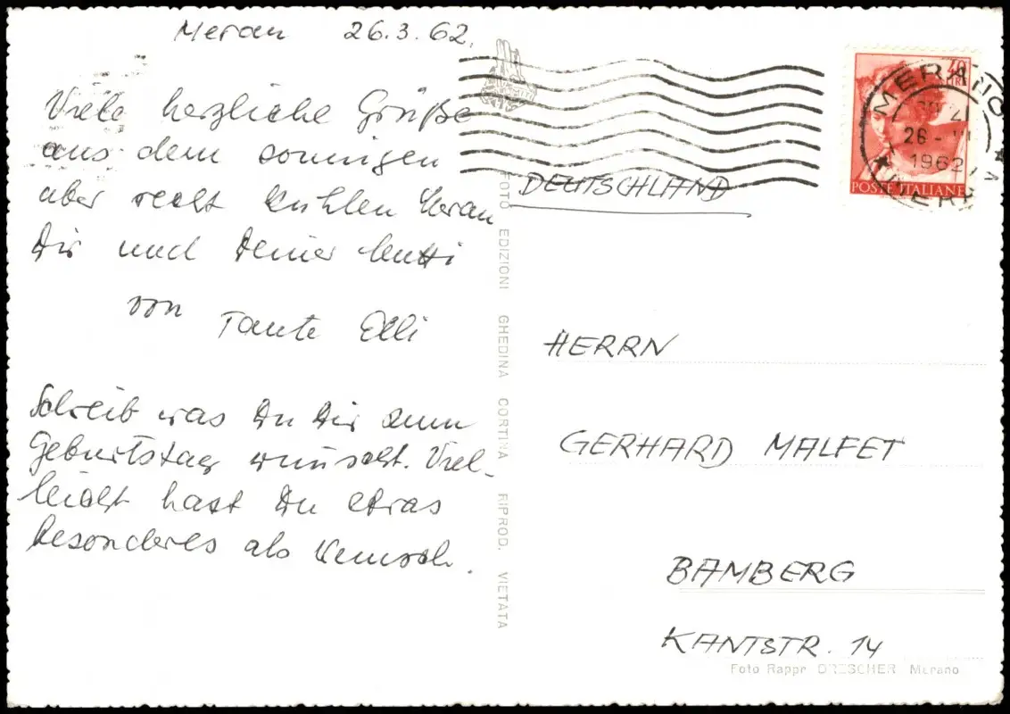 Cartoline Meran Merano Porta Venosta Meran - Vinschgauer Tor 1962