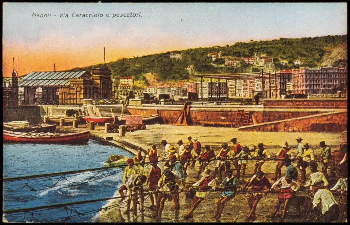 Cartoline Neapel Napoli Via Caracciolo e pescatori, Fischer am Hafen 1910