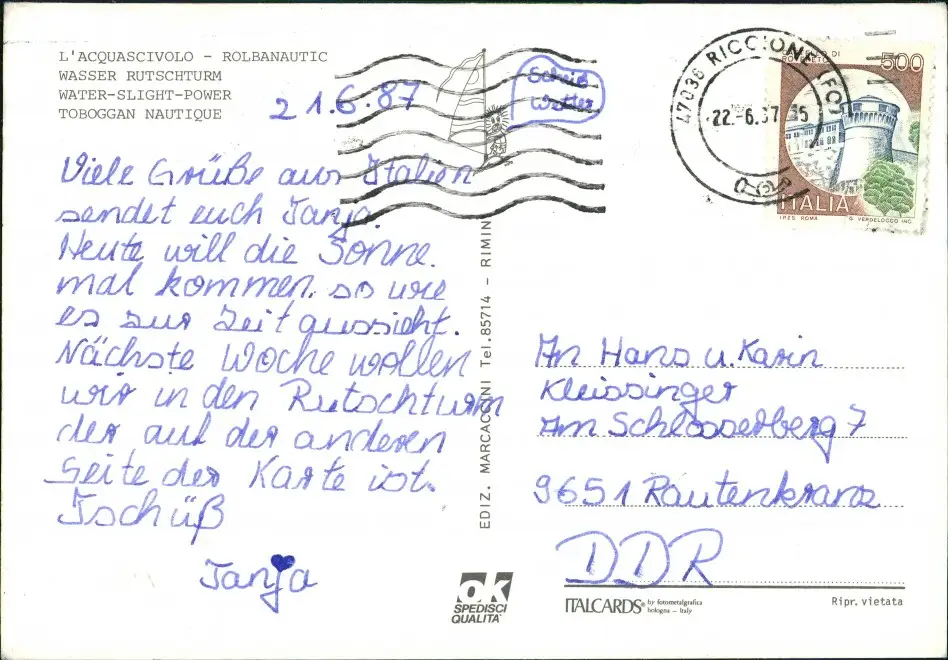 Cartoline Riccione WASSER RUTSCHTURM MB 1987